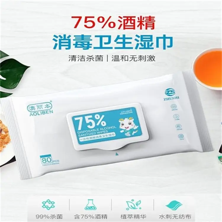 75%酒精湿巾 80片装 消毒湿纸巾批发 便携式清洁湿巾纸