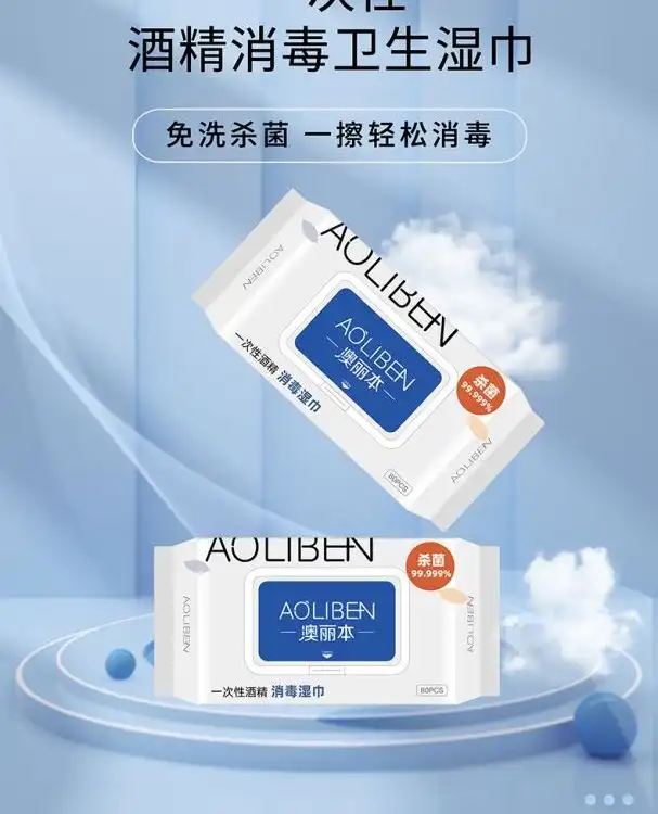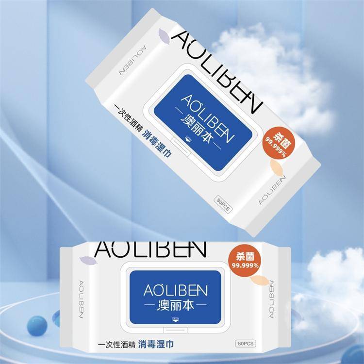 一次性酒精消毒湿巾 单片装80片装可选择 澳丽本消毒湿纸巾