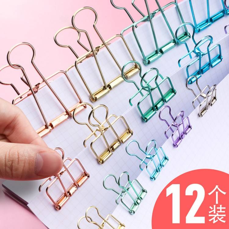 彩色大号长尾夹小清新混合装燕尾夹小中号铁票夹文件夹子试卷夹学