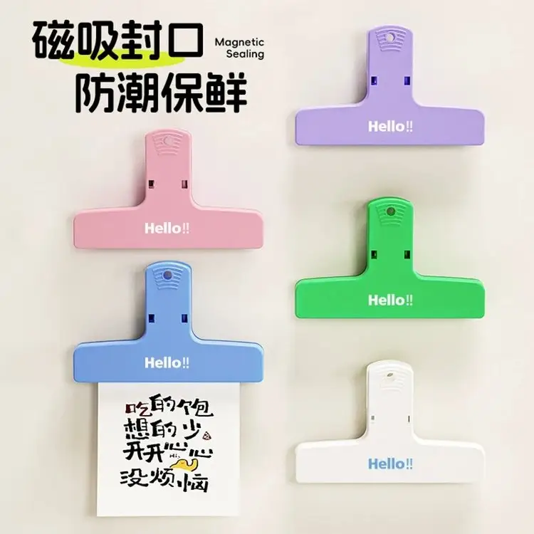 冰箱磁吸封口夹高颜值磁性强力夹创办公用品文件票据书夹子长尾夹