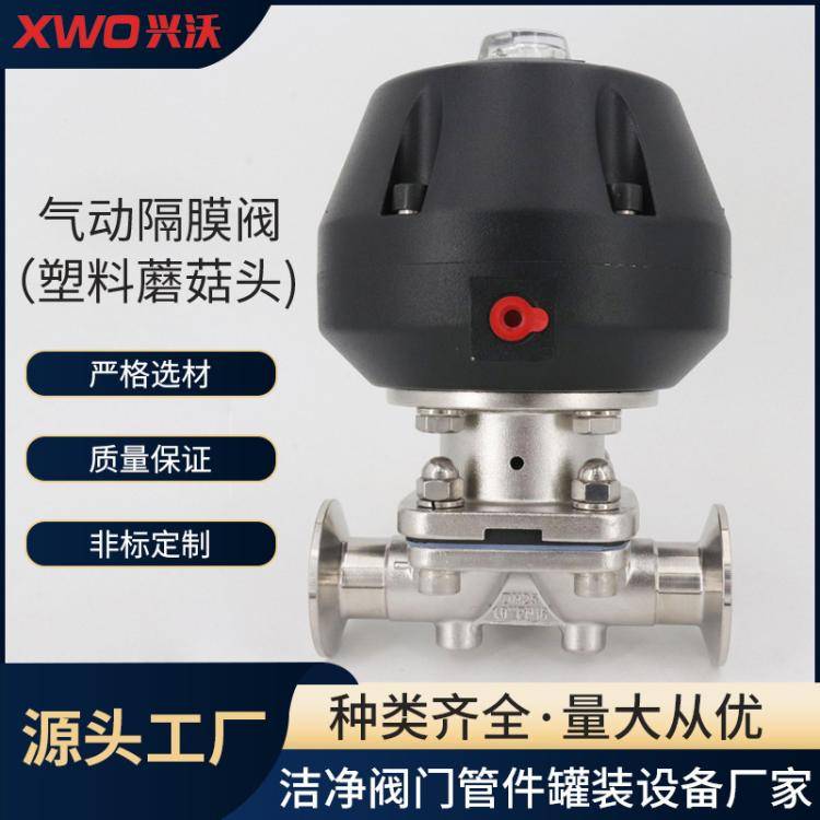 兴沃气动隔膜阀塑料蘑菇头不锈钢食品制卫生药级快装卡箍式双膜片