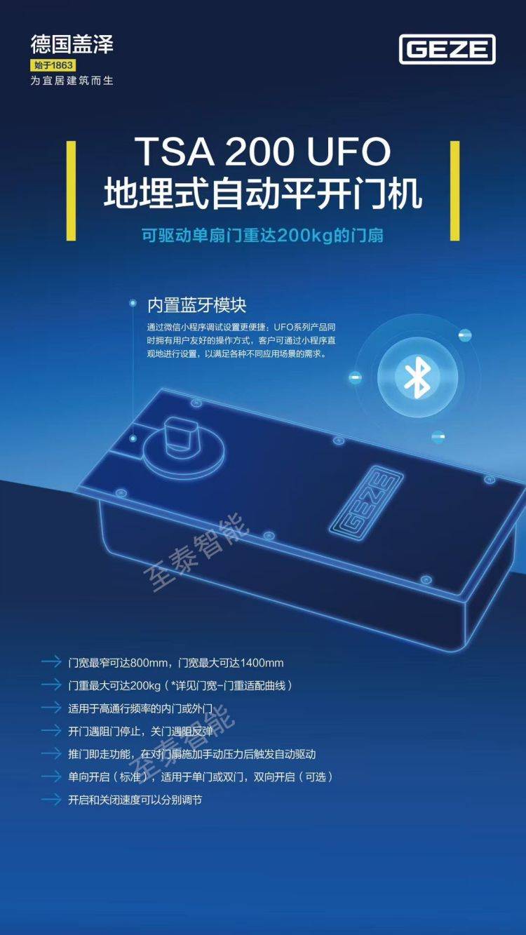 德国盖泽电动地弹簧GEZE TSA200 UFO 隐藏式自动平开门机