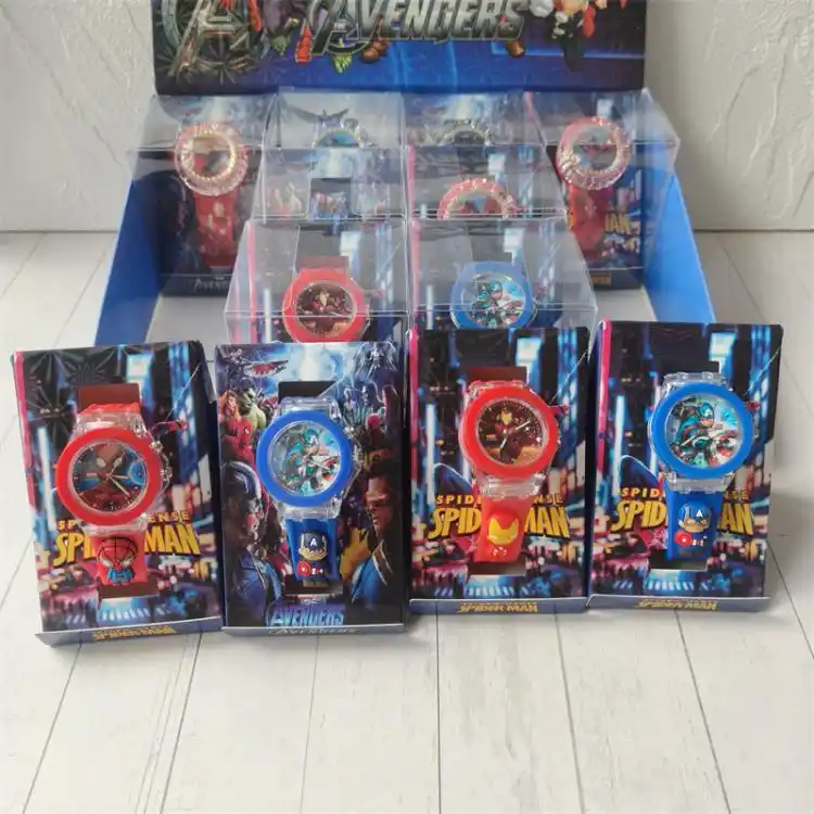 外贸复仇者蜘蛛侠贴片儿童发光手表男孩礼品电子表队长钢铁玩具表