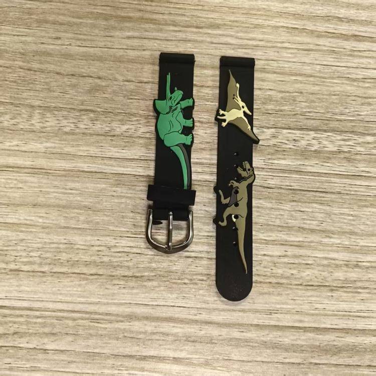 现货黑色恐龙表带3D滴胶公仔手表带硅胶 PVC卡通表带动漫图案表带