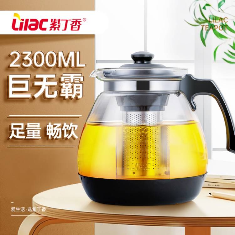 紫丁香耐热玻璃茶壶大号单壶过滤花茶壶红茶具套装家用冲泡茶水壶