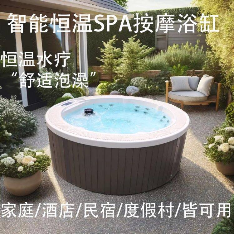 户外庭院SPA水疗浴缸多人别墅温泉冲浪恒温加热按摩圆形民宿泡池