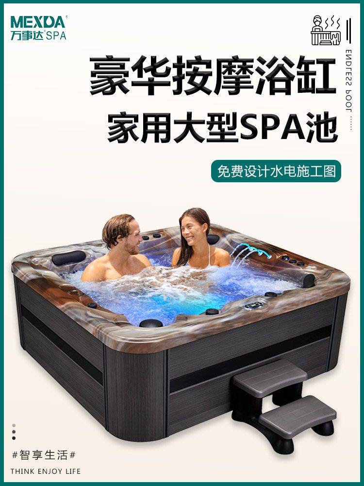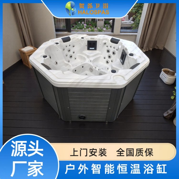 冲浪按摩SPA别墅大浴缸亚克力户外温泉智能恒温6人圆形养生池