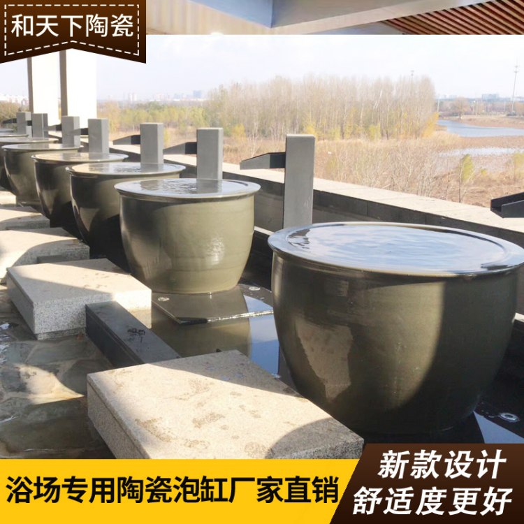 陶瓷洗浴泡澡缸日式酒店温泉泡缸陶瓷浴缸家用泡澡圆形独立式大缸