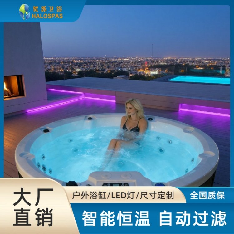 户外庭院SPA水疗浴缸多人别墅温泉冲浪恒温加热按摩圆形民宿泡池