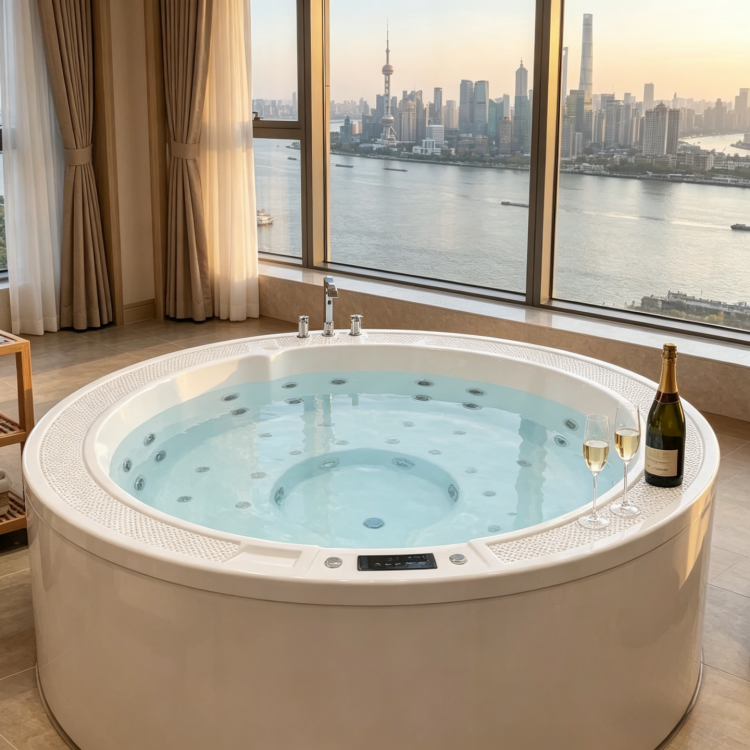 家人圆形恒温 SPA 浴缸 冲浪按摩成人泡澡盆 酒店民宿轻奢泡澡缸