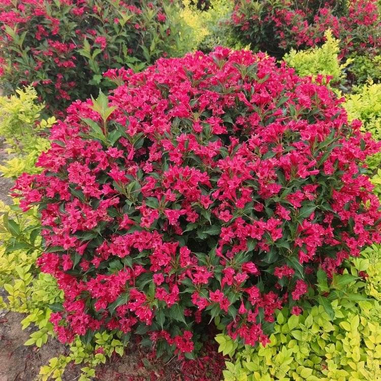 红王子锦带球基地出售 花期长 花坛花境景区道路园林绿化观赏苗木