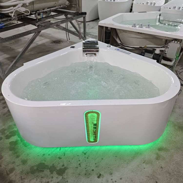 工厂直销亚克力普通浴缸独立式冲浪按摩气泡恒温彩灯扇形浴缸浴盆