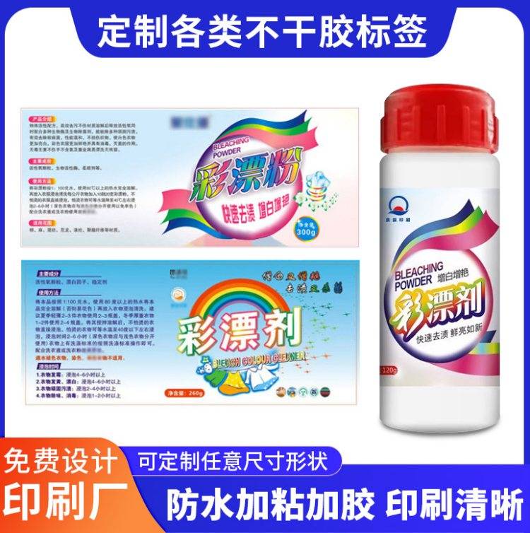 制定彩漂剂不干胶贴纸彩飘粉 羽绒服干洗剂标签PVC机贴卷标印刷