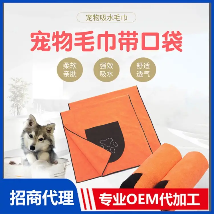 现货超细纤维亲肤狗爪标吸水口袋速干浴巾 清洁洗浴猫狗宠物毛巾