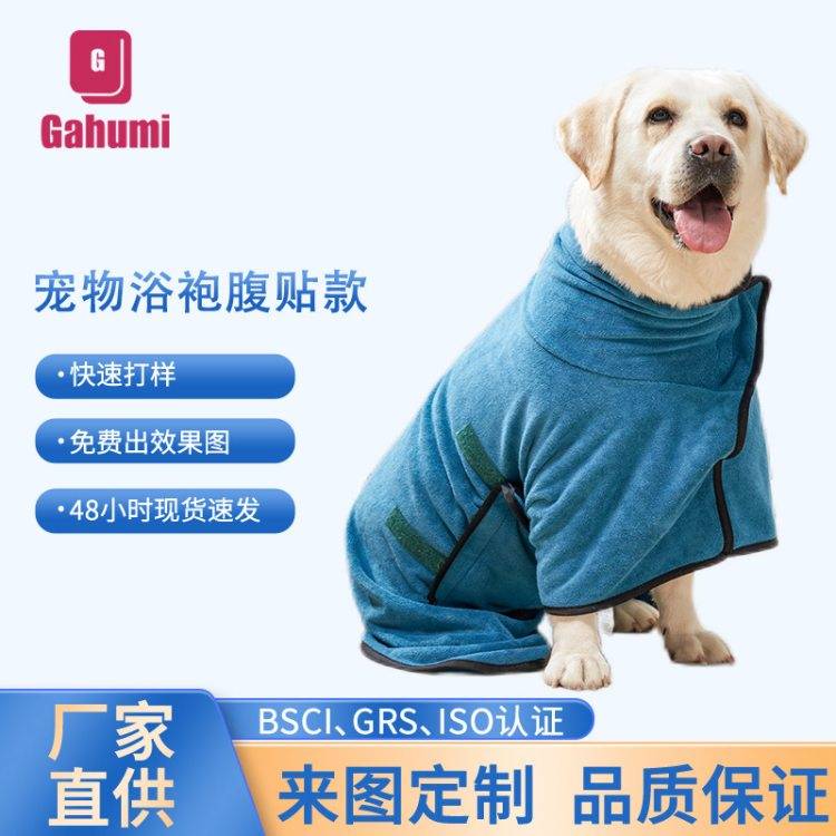 亚马逊 狗狗浴袍包边魔术贴 柔软速干吸水毛巾 宠物洗澡衣服浴巾