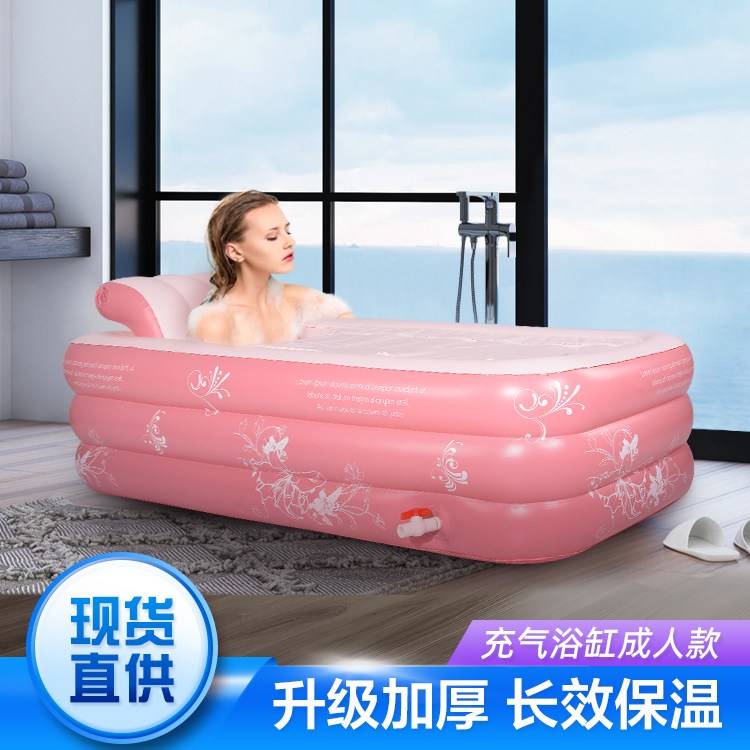 亿恩双桶设计PVC泡澡桶 折叠便携全身洗澡神器 恒温调节家用浴缸