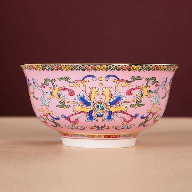 骨瓷碗描金扒花珐琅彩金钟饭碗家用单个高脚防烫中式宫廷风餐具