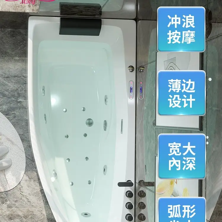 日式亚克力家用小户型冲浪按摩恒温轻奢转角双人浴缸异形浴盆1.7m