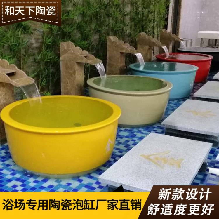 陶瓷圆形泡澡缸温泉浴场洗浴大缸酒店浴缸户外双人浴缸泡缸工厂家