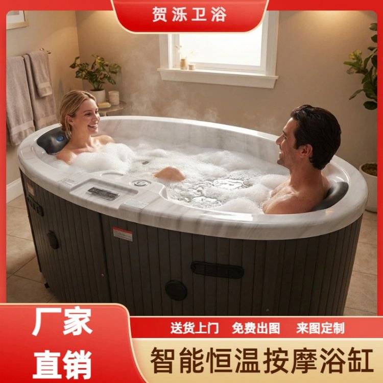 室内spa按摩池亚克力恒温加热浴室按摩浴缸智能水疗双人浴缸