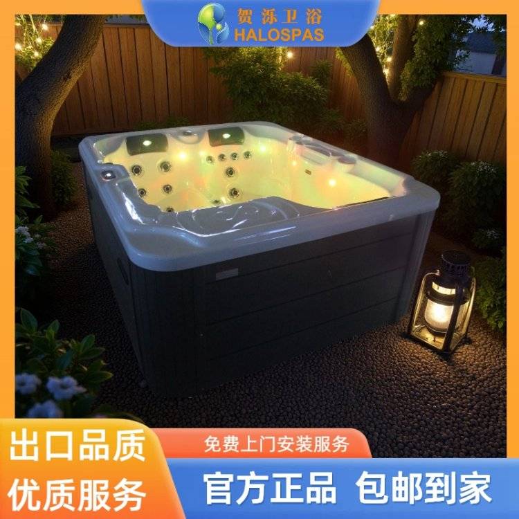 贺泺简约款嵌入式双人浴缸亚克力恒温加热户外浴池冲浪按摩独立式