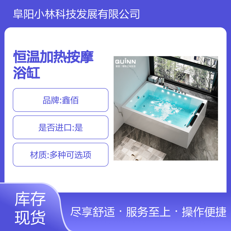奎因一体无缝双人情侣亚克力按摩浴缸大空间民宿酒店家用恒温浴缸
