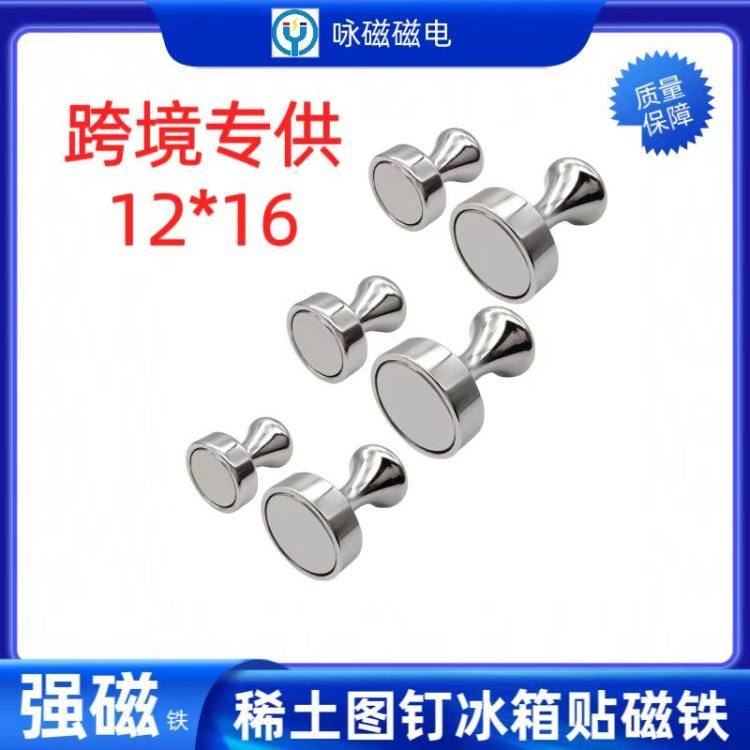 咏磁金属镀镍图钉磁铁12*16mm强磁冰箱贴钕铁硼磁钢教学白板书画
