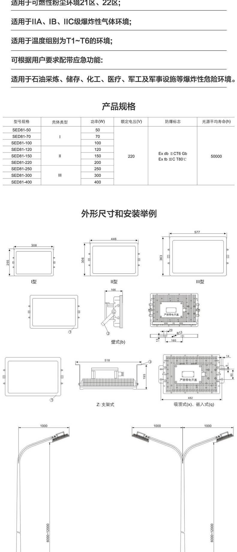 SED81铸铝防爆路灯 海岸码头专用耐盐雾腐蚀高亮度 LED防爆照明灯具