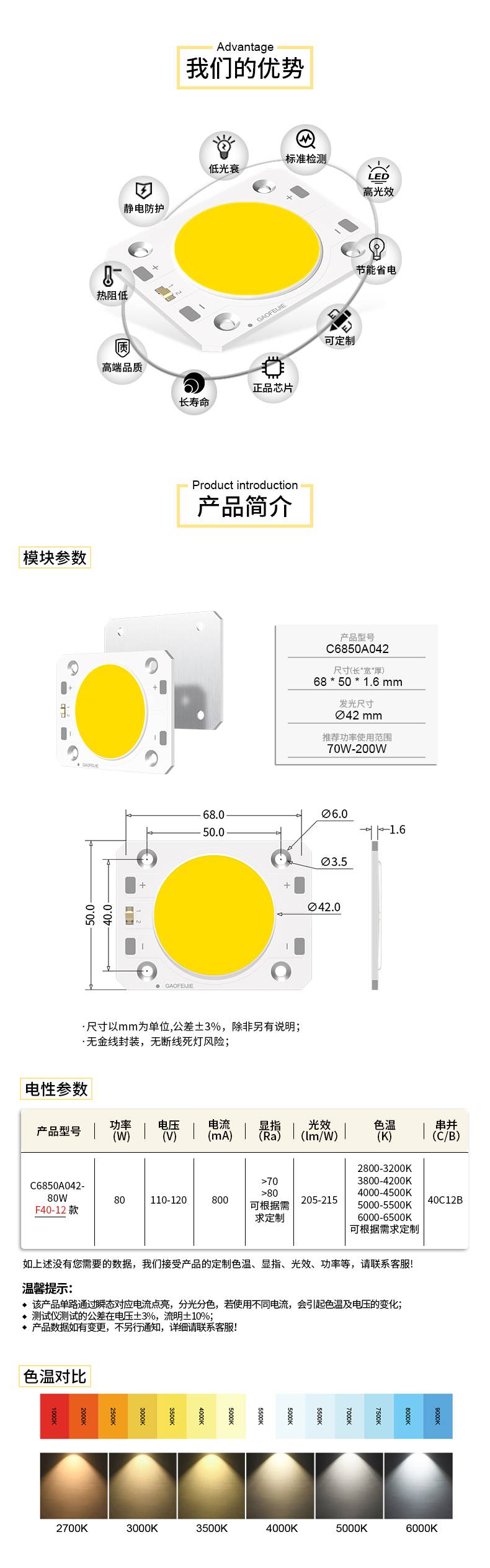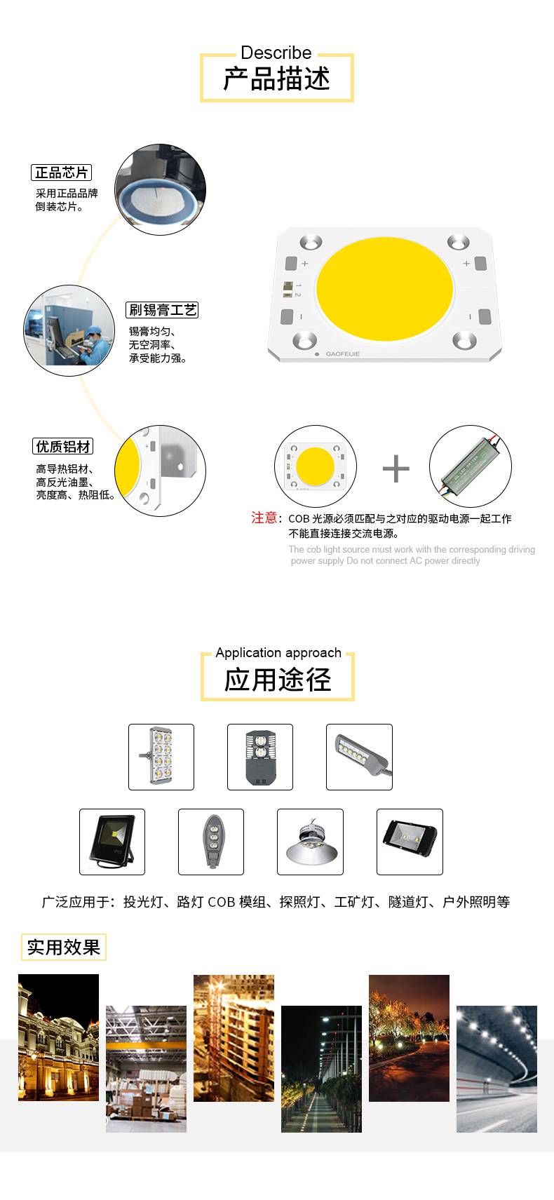 高光效 205-215ml/W 方形COB灯板 圆形发光∅42mm 户外照明灯具专用