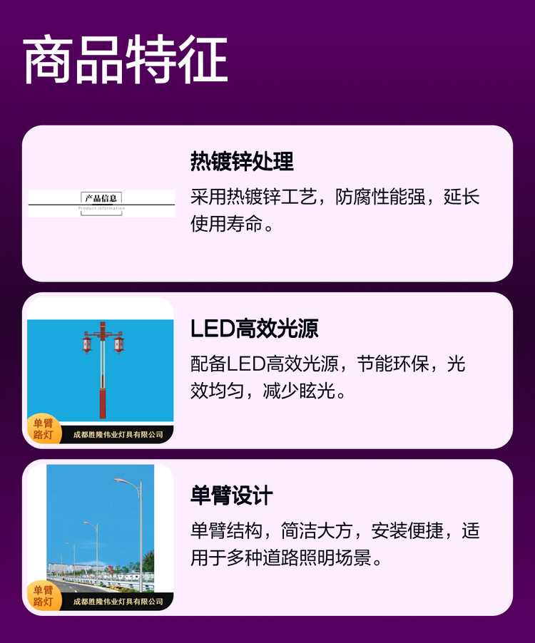 胜隆伟业热镀锌LED单臂路灯 户外道路照明专用灯具厂家直供