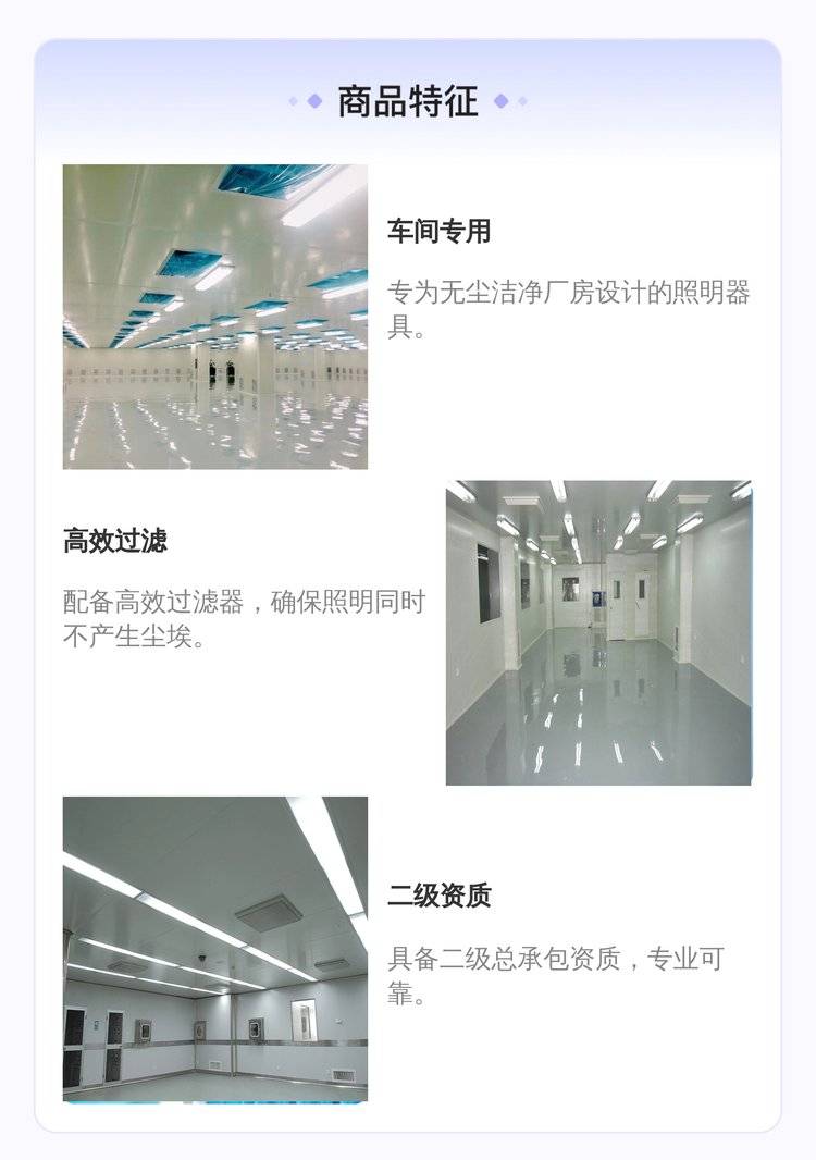 洁净厂房装修工程的照明器具:要采用车间专用灯具