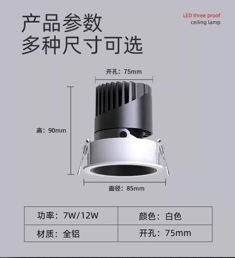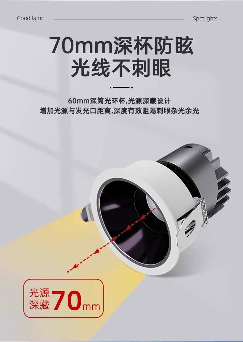 小山丘led嵌入式射灯天花灯客厅专用家用店铺商用防眩灯具75筒灯