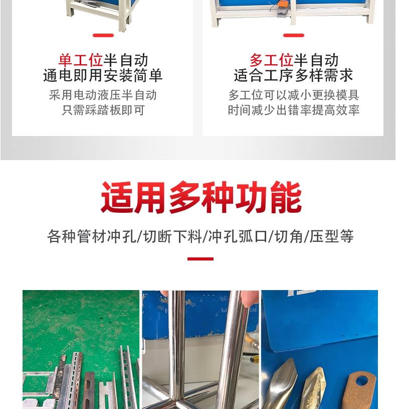 全半自动液压方管冲孔机不锈钢管防盗网打孔机角钢切角机