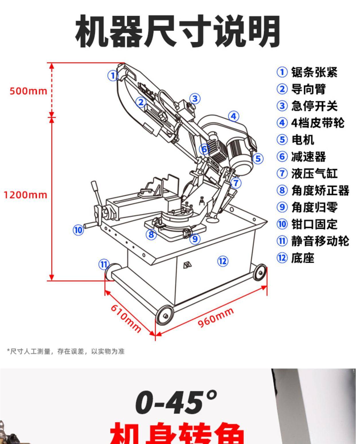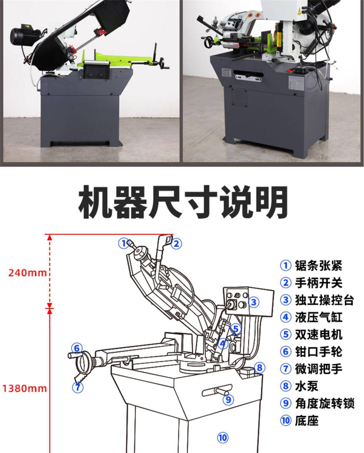金属切割机钢材细木工微型带锯机多功能小型锯床切管机转角切角机