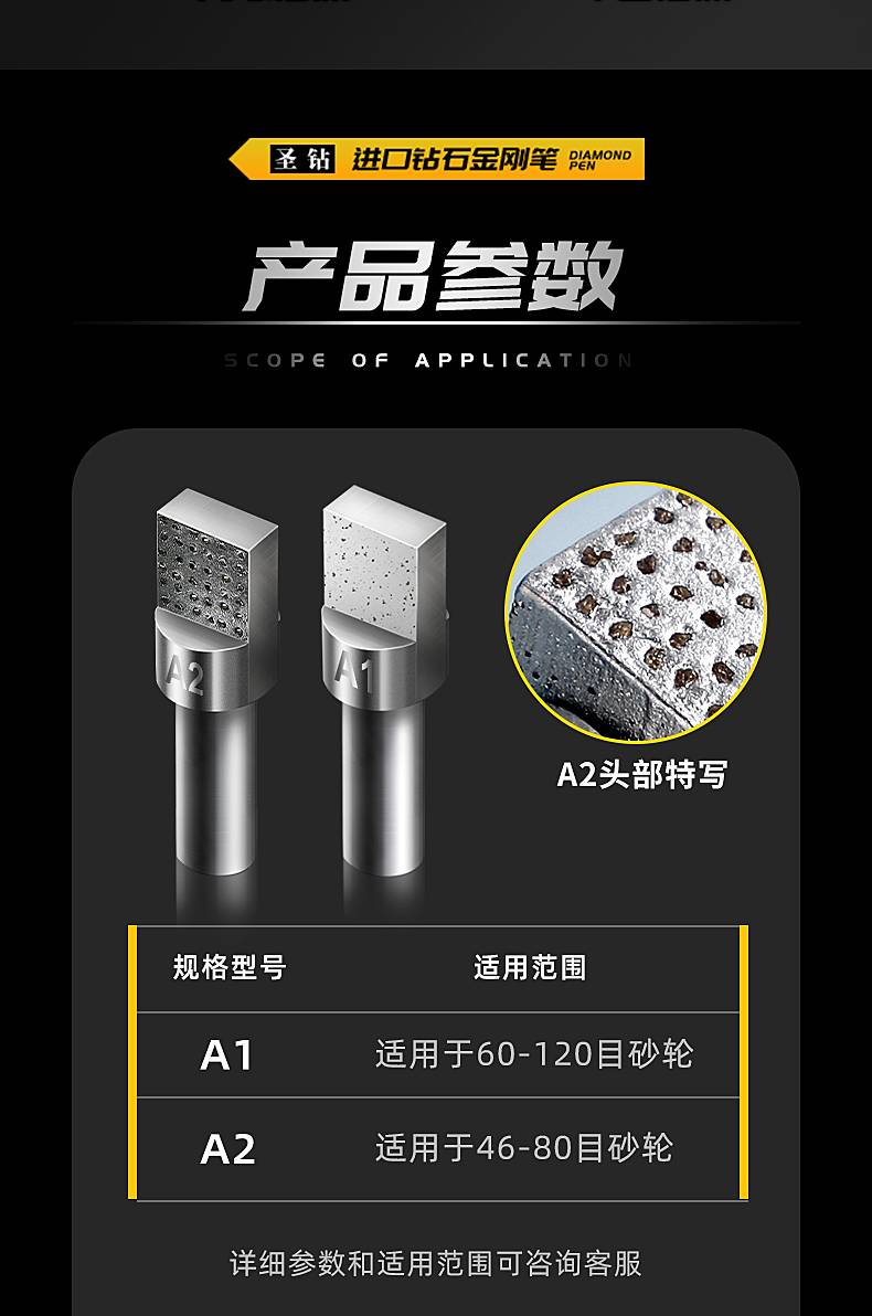 圣钻方头a1a2金刚笔修整器金刚石笔磨修砂轮磨床洗石笔修石修正器