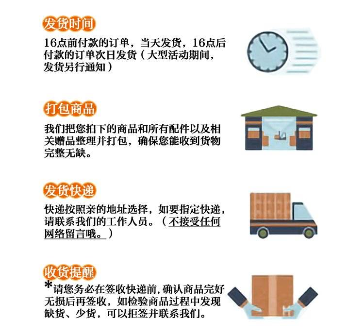 【运输方式】快递或物流,国内快递3-5天内到达,物流5-7天内到达.报价一般均含国内运输费用。偏远地区(内蒙.新疆.西藏)需补运费差价!