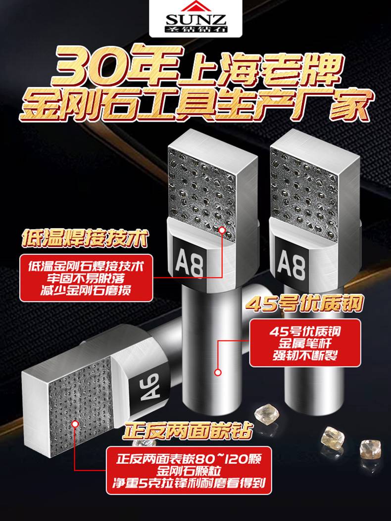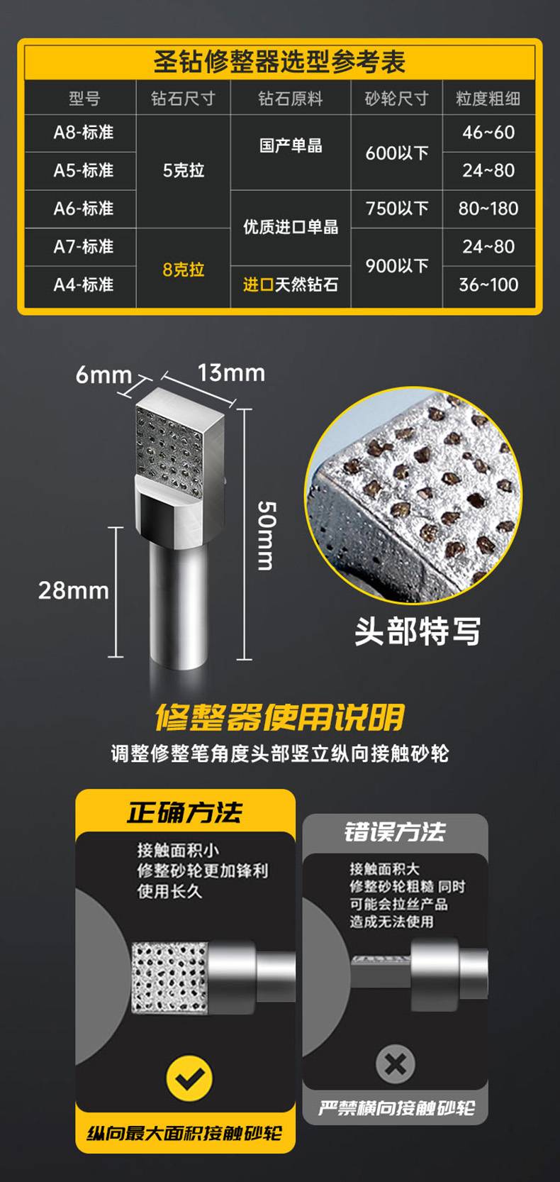 圣钻方头金刚笔修整器金刚石笔磨修砂轮磨床洗石笔修石修正器A6A8