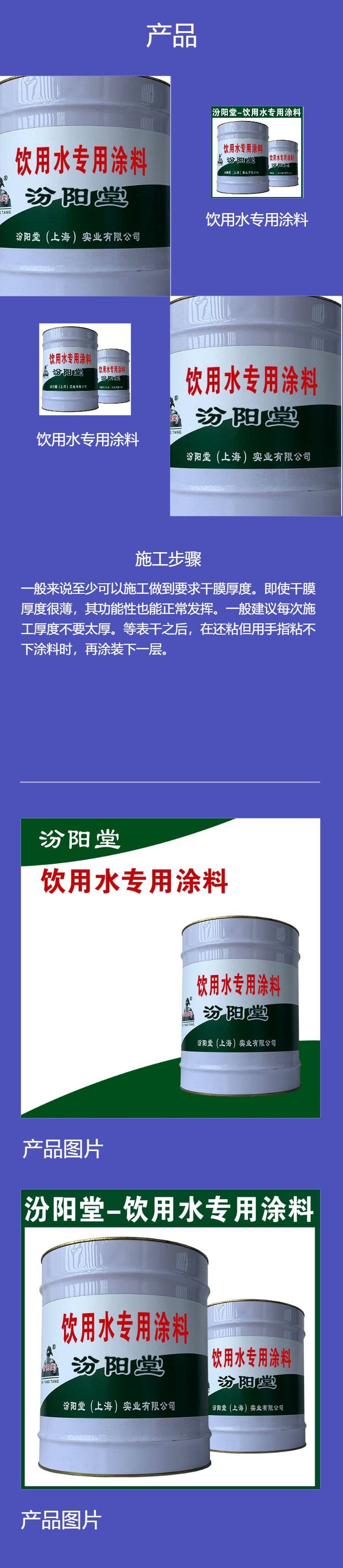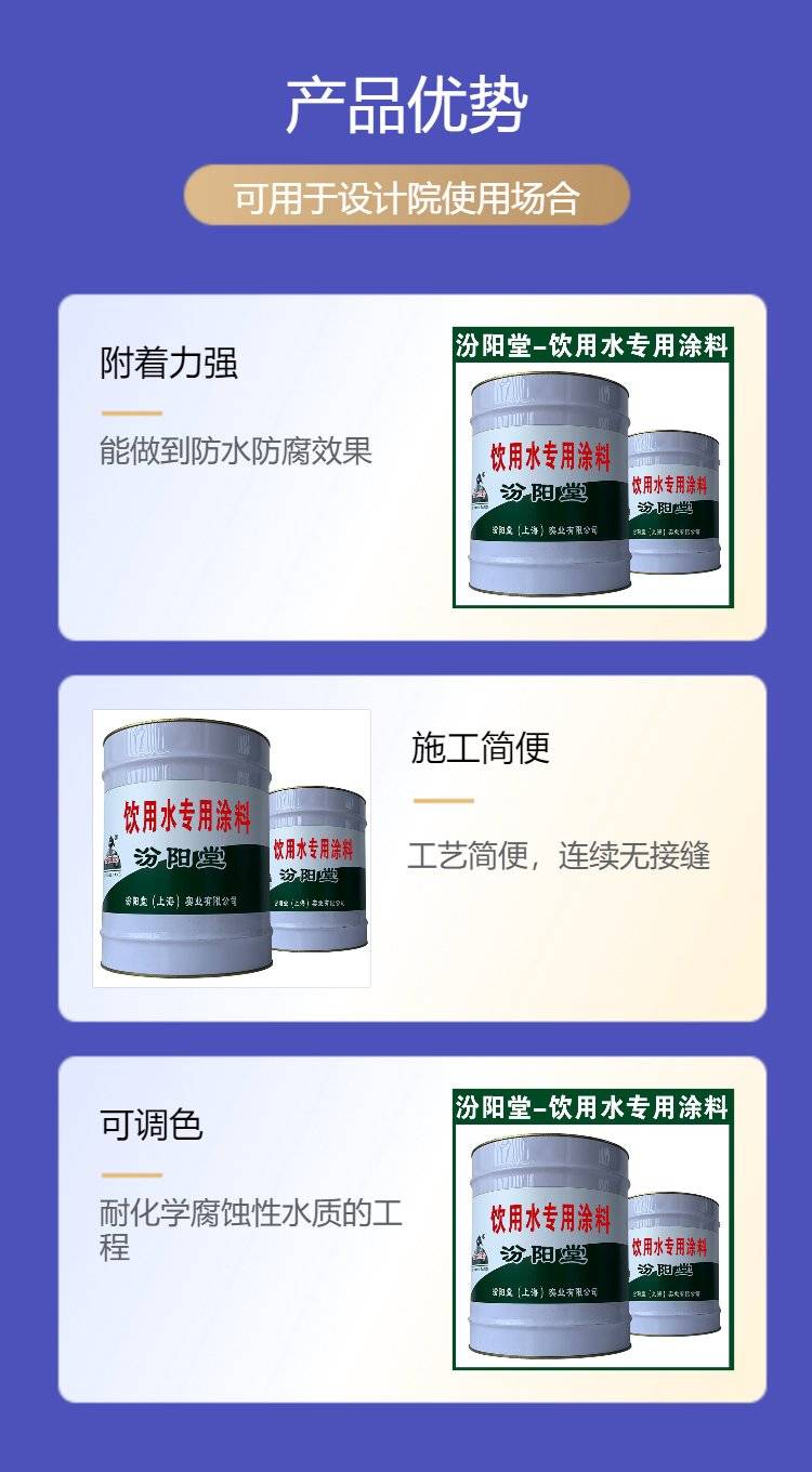 饮用水专用涂料施工湿度太高或不到一度以上,不得施工,基面温度在10度以上,38度以下才可施工。注意事项:施工过程中,被涂表面温度高于温度的差值,