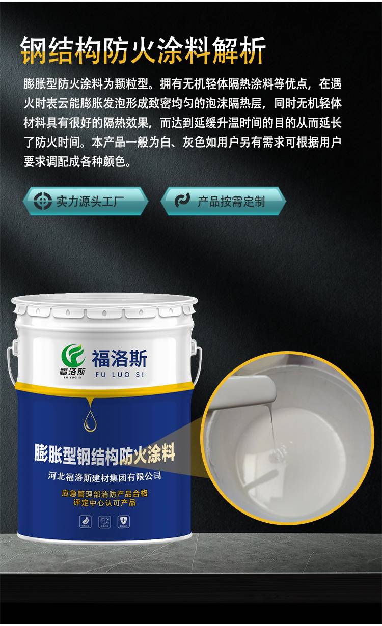 福洛斯 钢结构防火涂料 膨胀型 新建钢构厂房专用 阻燃隔热