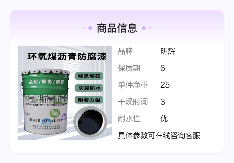 明辉 环氧沥青耐腐蚀防水涂料 污水池内衬专用防腐漆
