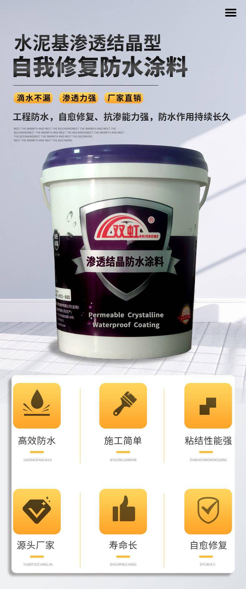 双虹水泥基渗透结晶防水涂料 海湾大桥翻修专用