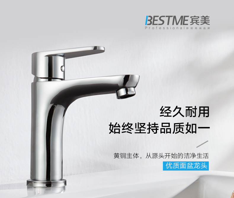 全铜主体冷热面盆水龙头卫生间洗脸盆铬色亮光单孔龙头