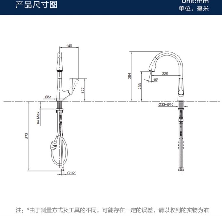 科勒品牌抽拉式厨房水龙头座装冷热双用562T