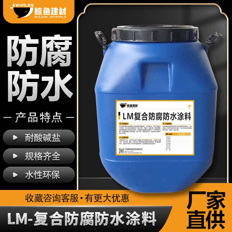 鲸鱼牌 vra-lm防腐防水涂料 污水厂处理池专用耐腐蚀抗渗涂料 50kg