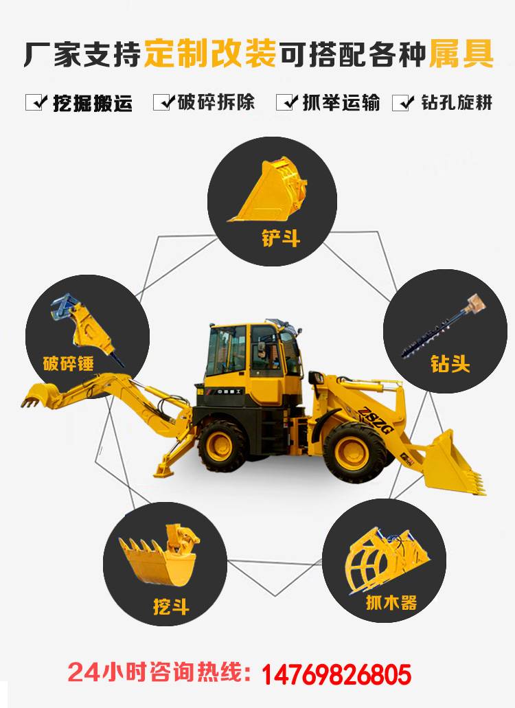 挖掘装载机A前后都可以使用的钩机 多功能两头忙铲车 中首重工