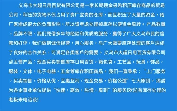 大超 生活用品 库存处理 诚信经营 废旧货物不收