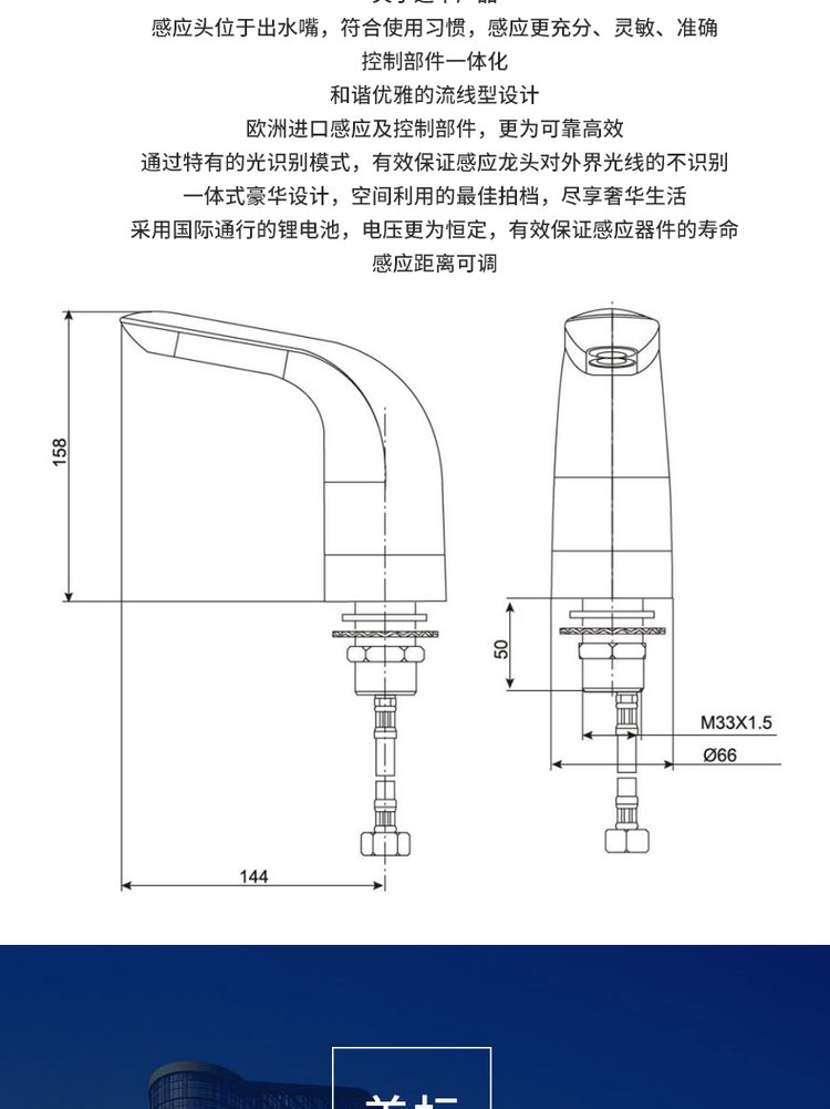 美标卫浴豪华型一体商用坐台盆式感应龙头FFAS8832直流冷热水龙头