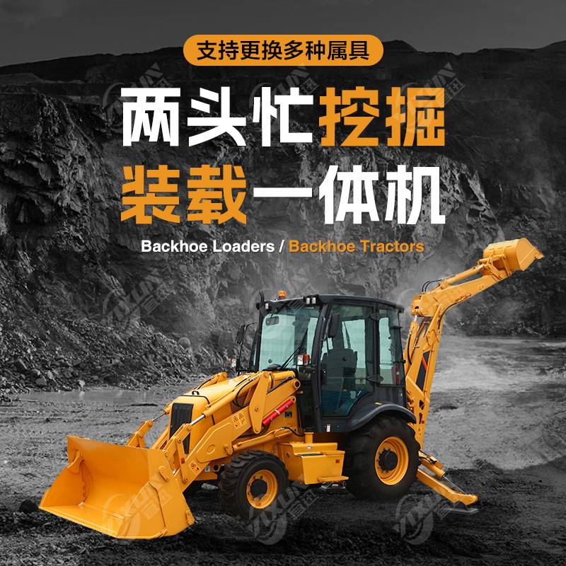 两头忙挖掘装载机 铲挖两用一体机 四驱轮式挖掘机铲车 支持定制
