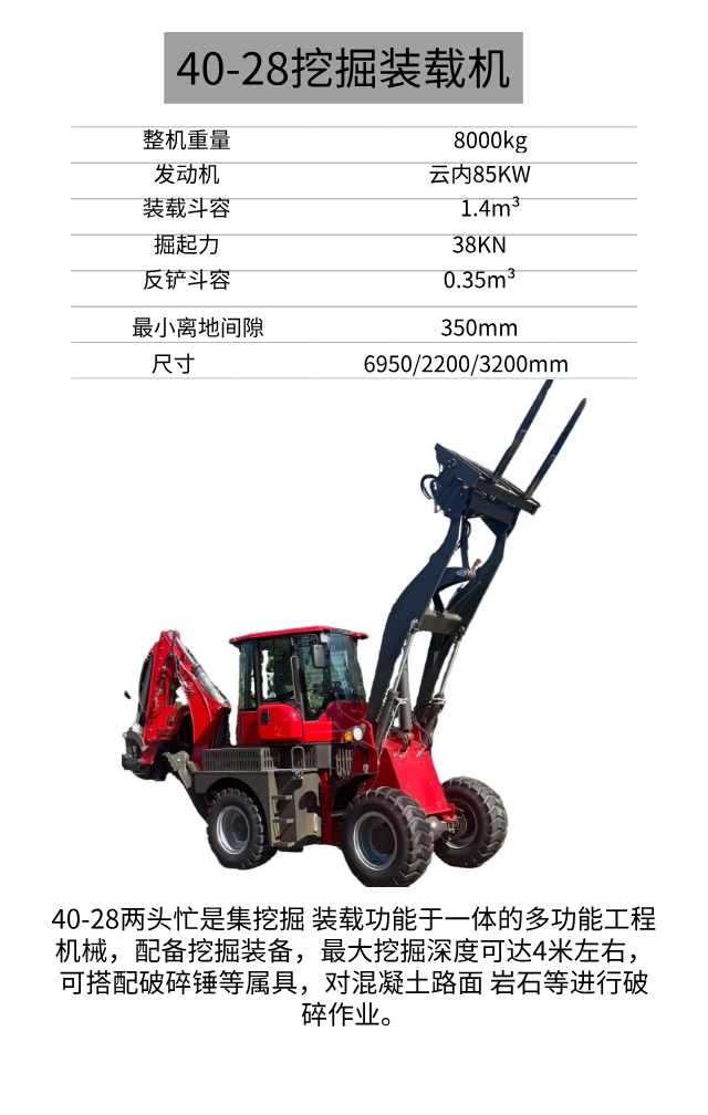 轮式挖掘装载机 40-28四驱两头忙 潍柴玉柴动力 可加破碎锤 挖机厂家