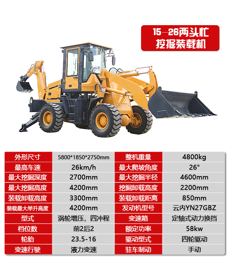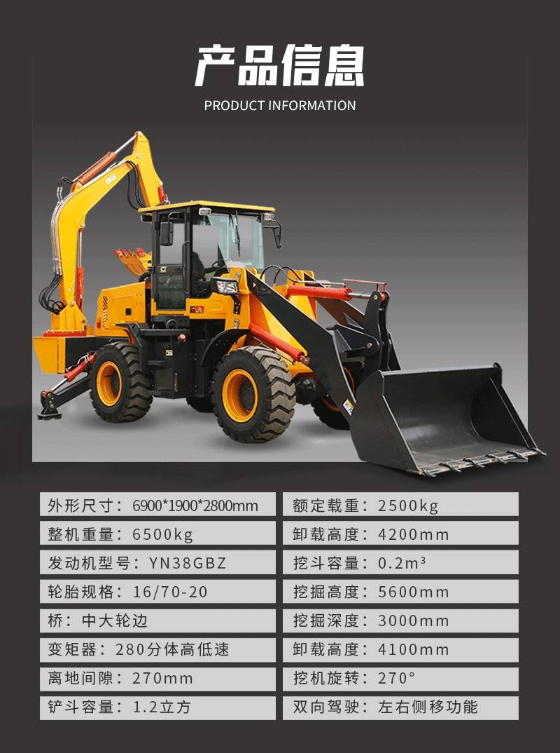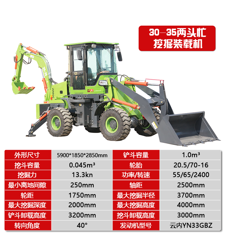 两头忙挖掘装载机小型铲车55-65农用工程前铲后挖两用挖铲一体机
